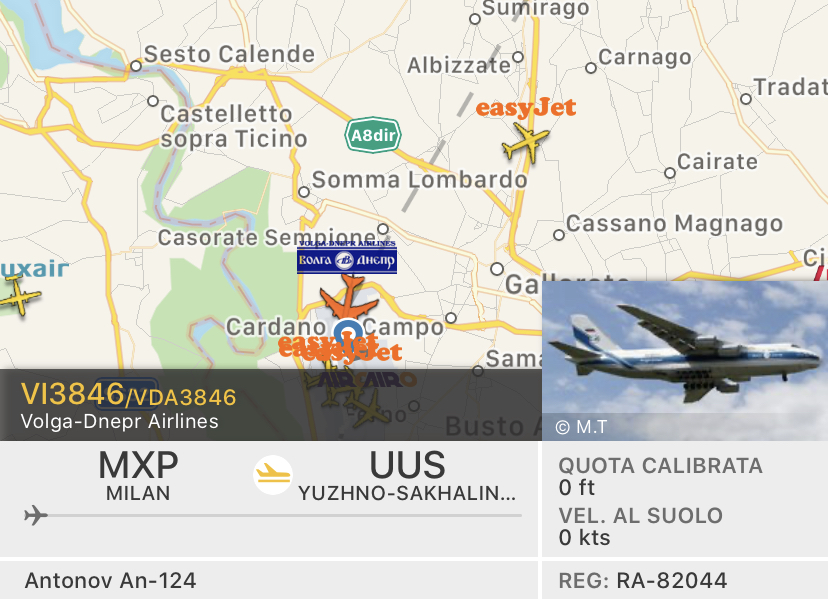 compagnie aeree Antonov 124 a Milano Malpensa Pubblicato da Italiavola il 2 ottobre 2020 E’ giunto a Milano Malpensa da Caienna via Sal e ora sta partendo per Yuzhno Sakhalin. E’ il An124/100 RA-82044 della Volga Dnepr Airlines. Condividi: Fai clic per condividere su Facebook (Si apre in una nuova finestra) Facebook Fai clic qui per condividere su LinkedIn (Si apre in una nuova finestra) LinkedIn Fai clic qui per condividere su Reddit (Si apre in una nuova finestra) Reddit Fai clic qui per condividere su Pinterest (Si apre in una nuova finestra) Pinterest Fai clic qui per condividere su Tumblr (Si apre in una nuova finestra) Tumblr Fai clic per condividere su X (Si apre in una nuova finestra) X Mi piace Caricamento... Correlati