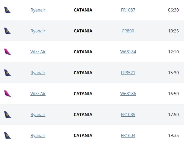 Due le compagnie aeree : Ryanair con 5 voli e Wizz con due voli.