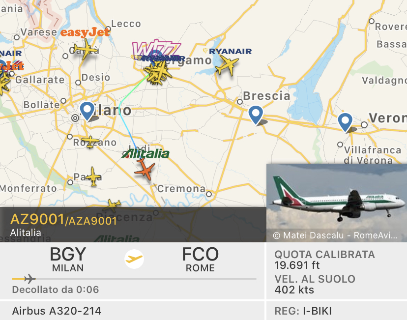 E’ appena decollato da #Bergamo l’A320 che ha da poco trasportato la #Nazionale di #Calcio nella città orobica. Il team proveniente da #Danzica, dove ieri sera ha giocato con la #Polonia e che mercoledì incontrerà l’Olanda. E’ I-BIKI, il terzo A320-214 consegnato a #Alitalia, l’aeromobile il quale ha effettuato il volo.
