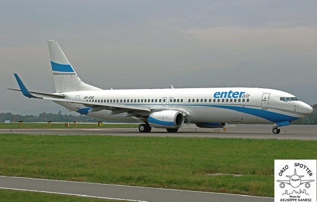 Con questo Boeing 737/800 Enter Air SP-ESE ha trasportato la #squadra dell’#Atalanta Bergamasca Calcio che giocherà in #Danimarca per un impegno di #UEFAChampionsLeague. L’aereo della linea aerea polacca ha volato da #Bergamo a #Karup. La foto e’ di Giuseppe Danesi.