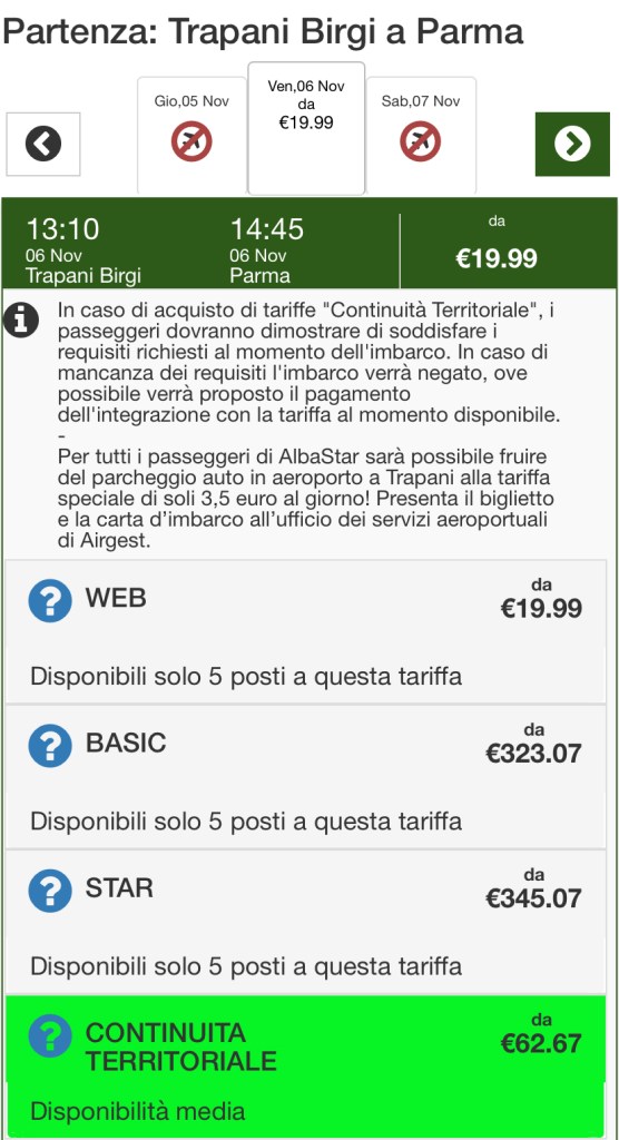 Da oggi sono in vendita i voli della continuità territoriale operati da AlbaStar dall’aeroporto di Trapani per Brindisi , Napoli e Parma.