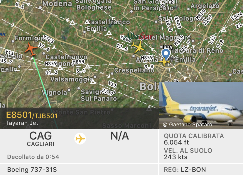 Poi il B737/31S LZ-BON Tayaranjet proveniente da Cagliari che giocherà con il Bologna.