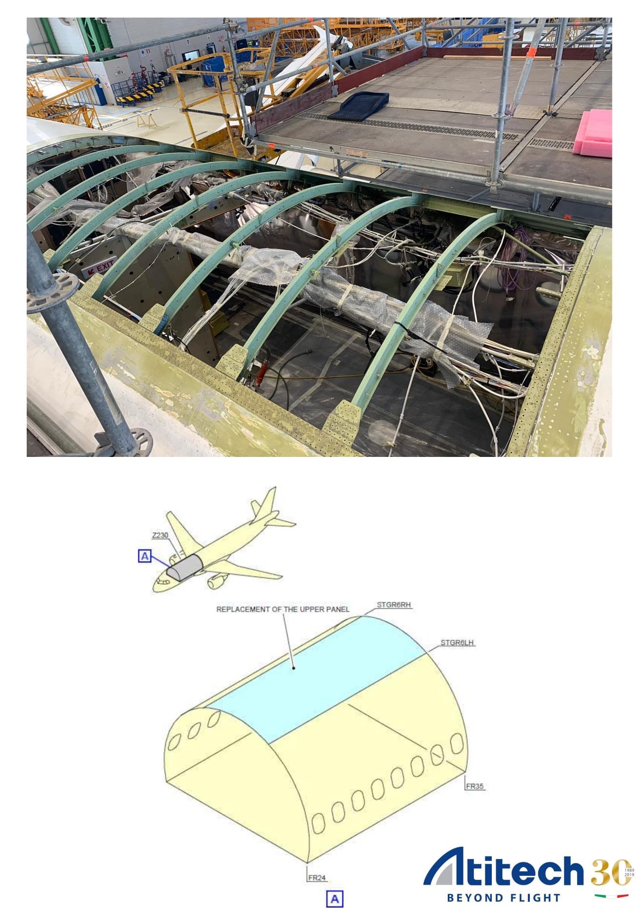 Per questo l’applicazione del #ServiceBulletin SB A320-53-1177 prevede la sostituzione completa del pannello esterno sulla #fusoliera tra le centine FR24 e FR35, e tra le #STGR6LH e #STGR6RH. Infatti l’attuale dopo il SB A320-23-1761 non e’ compatibile strutturalmente con l’aggiunta del suddetto apparato.