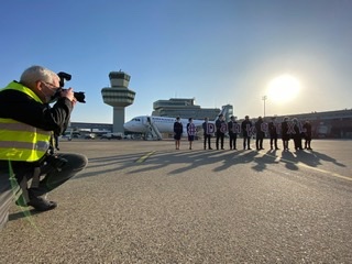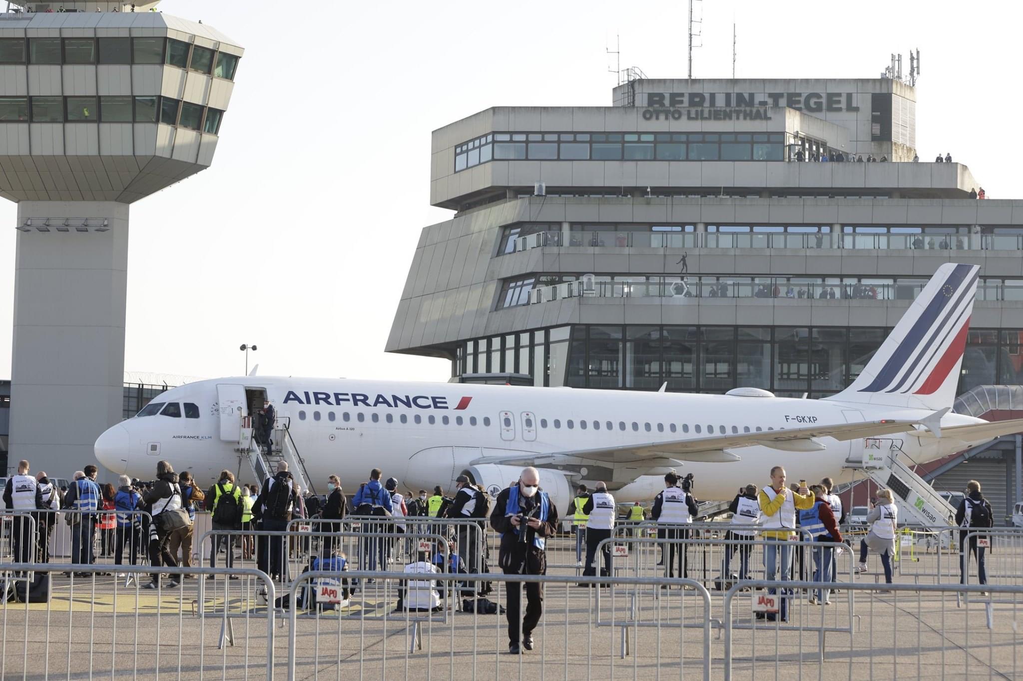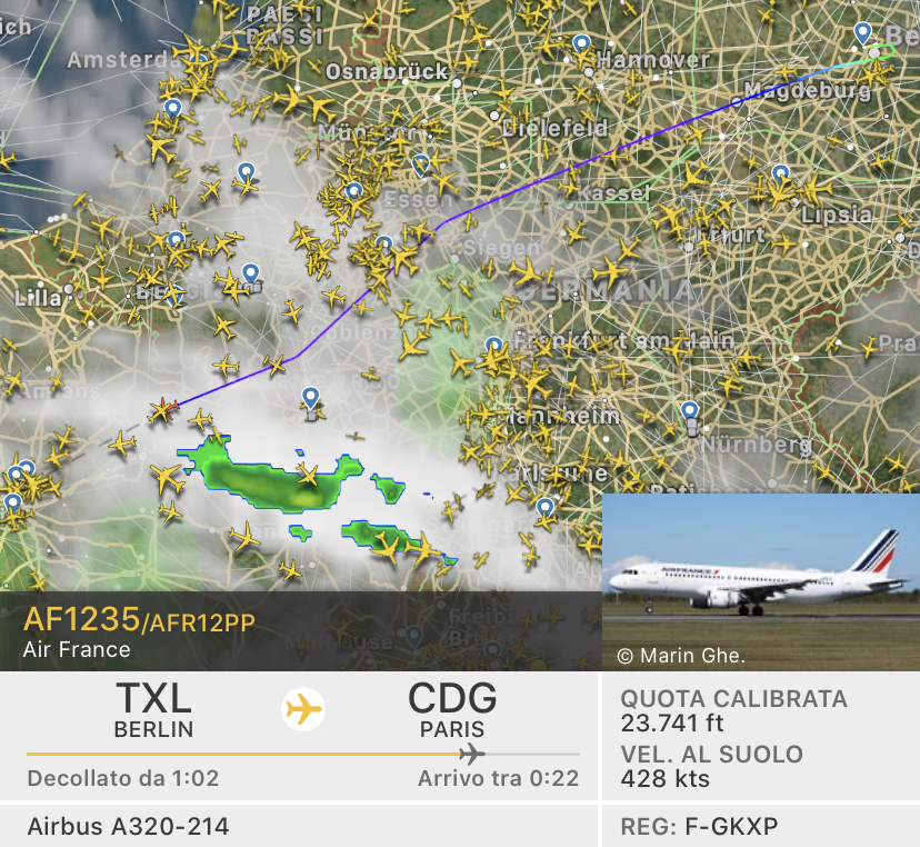 L’aereo e’ ancora un volo verso Parigi, la sua partenza in un assolata Berlino alle 15:39