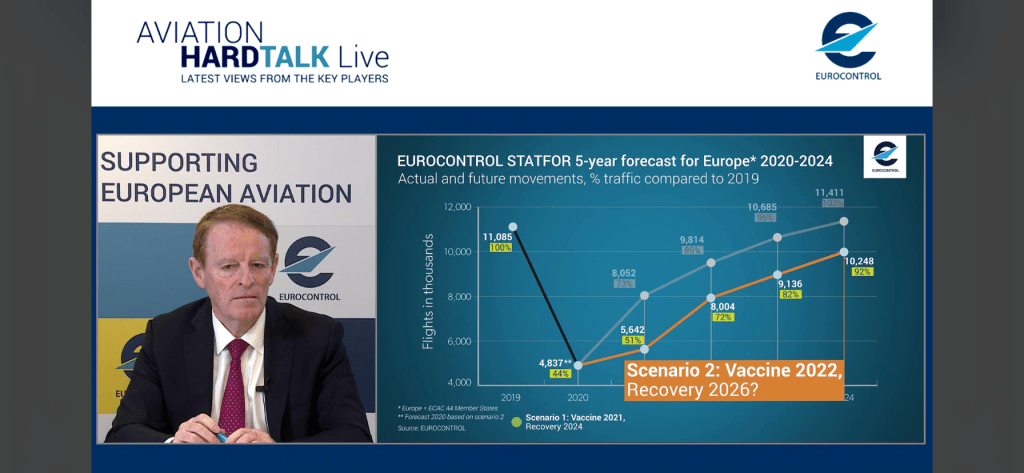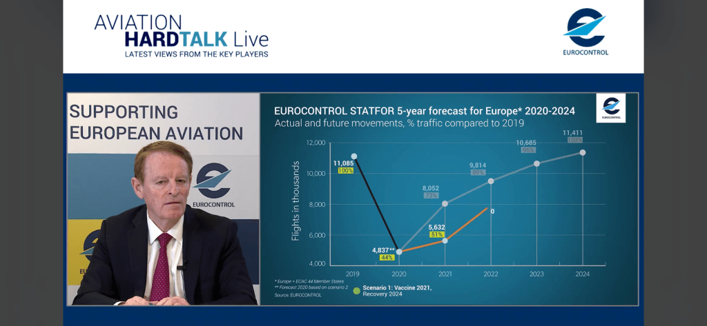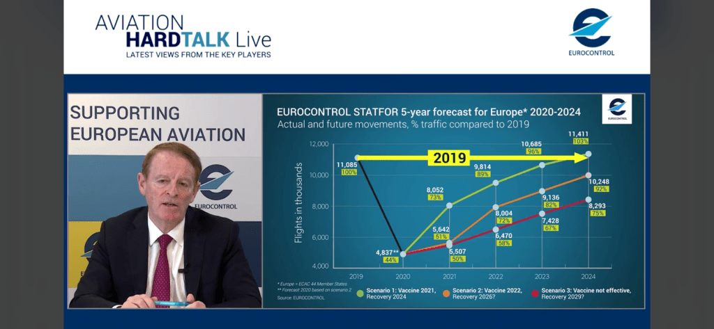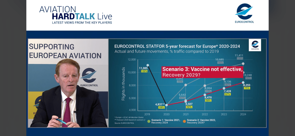 Il domani del #trafficoaereo per #Eurocontrol si fa in tre. E’ il numero degli scenari divulgati questo pomeriggio da Eamonn Brennan.