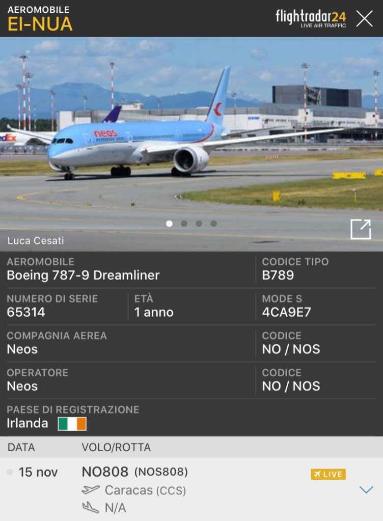 Senza categoria Neos ha volato su Caracas Pubblicato da Italiavola il 16 novembre 2020 Il #B787-9 #Dreamliner EI-NUA della #Neos ieri ha operato una rotazione #Milano – #Caracas. L’aereo ora e’ sulla via del ritorno su Milano #Malpensa. In precedenza era arrivato. da Nanchino. Condividi: Fai clic per condividere su Facebook (Si apre in una nuova finestra) Facebook Fai clic qui per condividere su LinkedIn (Si apre in una nuova finestra) LinkedIn Fai clic qui per condividere su Reddit (Si apre in una nuova finestra) Reddit Fai clic qui per condividere su Pinterest (Si apre in una nuova finestra) Pinterest Fai clic qui per condividere su Tumblr (Si apre in una nuova finestra) Tumblr Fai clic per condividere su X (Si apre in una nuova finestra) X Mi piace Caricamento... Correlati