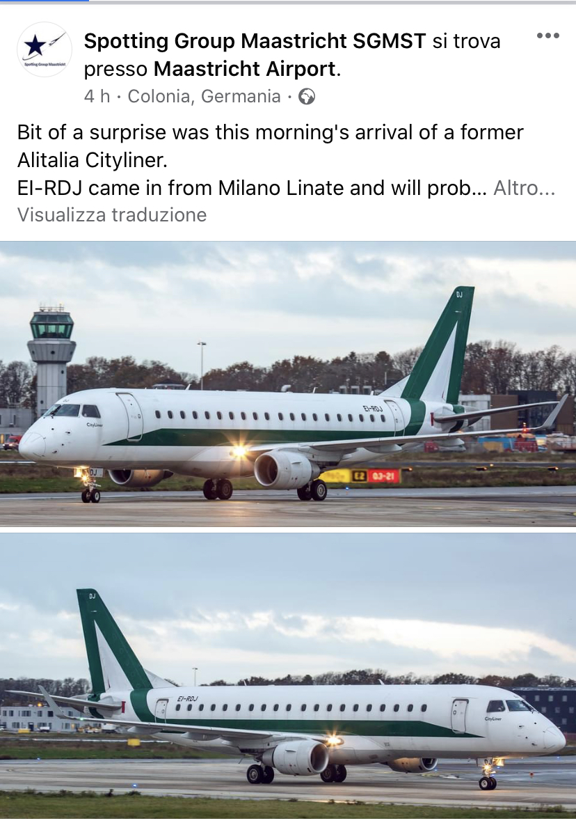 Quest’oggi un EMB175 ex Alitalia CityLiner EI-RDJ come AZ8032 e’ stato trasferito da Milano Linate a Maastricht. E’ uno di quelli che da tempo erano stati resi privi dei titoli e del rosso nella coda. Presumibilmente messo fuori flotta perché il lessor non si e’ accordato con il metodo della locazione “pay by the hour”. A Maastricht vengono svolte diverse attività, dalla manutenzione alla sverniciatura e riverniciatura. Vedremo come si evolveranno i fatti.