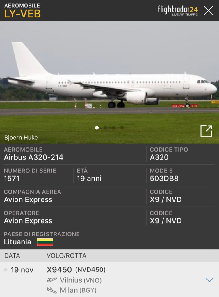 Senza categoria Avion Express a Bergamo Pubblicato da Italiavola il 20 novembre 2020 Ieri sera a #Bergamo, proveniente da #Vilnius e’ arrivato un A320-214 LY-VEB della #AvionExpress. Condividi: Fai clic per condividere su Facebook (Si apre in una nuova finestra) Facebook Fai clic qui per condividere su LinkedIn (Si apre in una nuova finestra) LinkedIn Fai clic qui per condividere su Reddit (Si apre in una nuova finestra) Reddit Fai clic qui per condividere su Pinterest (Si apre in una nuova finestra) Pinterest Fai clic qui per condividere su Tumblr (Si apre in una nuova finestra) Tumblr Fai clic per condividere su X (Si apre in una nuova finestra) X Mi piace Caricamento... Correlati