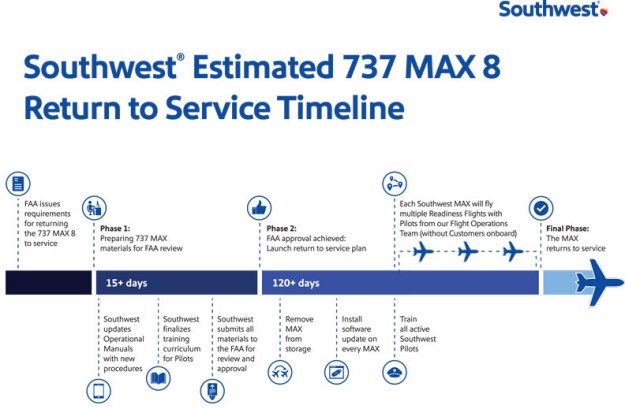 Prima di restituire il velivolo al servizio clienti, tuttavia, ogni pilota Southwest attivo completerà l’addestramento di volo aggiuntivo richiesto dalla FAA in uno dei nostri nove simulatori 737 MAX e completerà l’addestramento basato su computer richiesto dalla FAA che copre le procedure MAX. Southwest richiederà inoltre che i piloti attivi riprendano il nostro addestramento sulle differenze basato su computer 737 MAX 8 originale come aggiornamento per completare l’addestramento richiesto dalla FAA. Inoltre, Southwest effettuerà più voli di disponibilità su ciascuno dei nostri 34 aeromobili MAX e completerà migliaia di ore di lavoro, ispezioni e aggiornamenti software prima che uno dei nostri clienti salga a bordo di un Southwest 737 MAX.