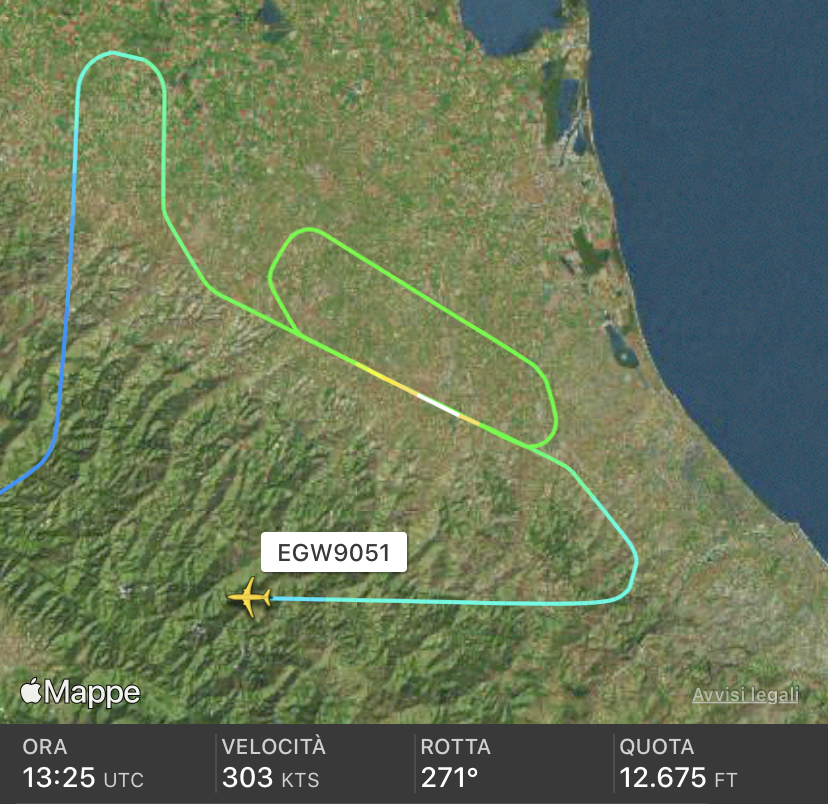 Un touch and go a Forli e un altro basso avvicinamento oggi per il Embraer E190 I-EGOA della Ego Airways. Dopo essere decollato da Firenze come EGW9051, ha di nuovo effettuato un mancato avvicinamento sull’aeroporto fiorentino. Poi ha messo la prua verso nord est scavalcando l’Appennino. A seguire ha dapprima iniziato un avvicinamento ILS e alla quota di 800 piedi ha ripreso quota. Dopo un circuito sottovento ha proseguito con un altra procedura ILS conclusasi con l’atterraggio e l’immediato go-around per completare il touch and go. Quindi ha messo prua verso Firenze effettuando una virata a destra dopo una salita prua pista. La compagnia sta chiaramente svolgendo un attività di addestramento per la qualifica dei piloti sul velivolo alla presenza di un pilota TRI/TRE.