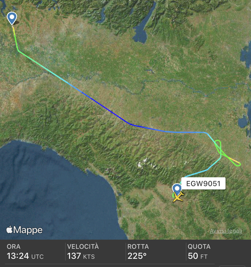 Il terzo volo di oggi della Ego Airways, come si vede e’ stato un decollo da Firenze e un interruzione della STAR per poi procedere all’effettuazione di un avvicinamento, che si concluderà con un atterraggio.