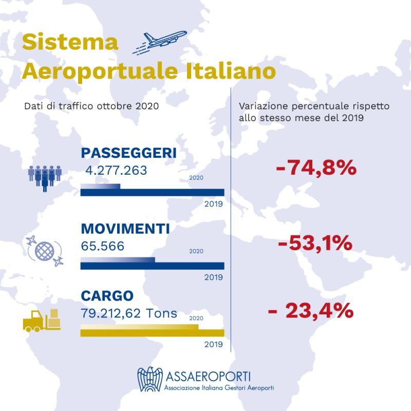 I ristori oppure un aiuto agli aeroporti si confermano necessari, guardando la slide prodotta da Assaeroporti con i dati di ottobre.