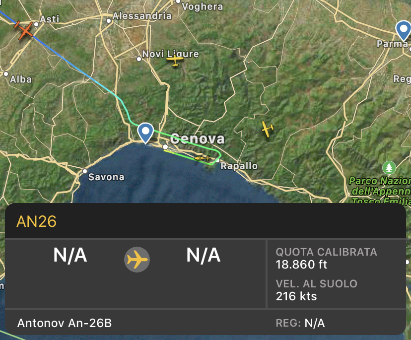 compagnie aeree Vulkan Air a Genova in transito Pubblicato da Italiavola il 24 novembre 2020 Questo pomeriggio un An26B della Vulkan Air proveniente da Birmingham ha fatto scalo a Genova. Successivamente e’ ripartito verso est. Condividi: Fai clic per condividere su Facebook (Si apre in una nuova finestra) Facebook Fai clic qui per condividere su LinkedIn (Si apre in una nuova finestra) LinkedIn Fai clic qui per condividere su Reddit (Si apre in una nuova finestra) Reddit Fai clic qui per condividere su Pinterest (Si apre in una nuova finestra) Pinterest Fai clic qui per condividere su Tumblr (Si apre in una nuova finestra) Tumblr Fai clic per condividere su X (Si apre in una nuova finestra) X Mi piace Caricamento... Correlati