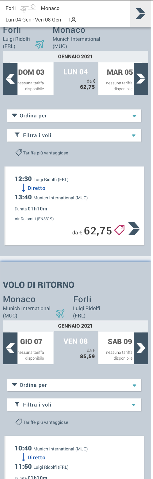 Forlì – Monaco 12:30-13:40 lu-me-ve—