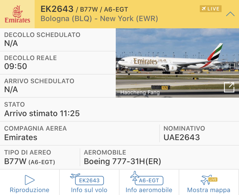 #Emirates con il volo #EK2643 stamani e’ decollata puntualmente da #Bologna alla volta di #NewYork #EWR.