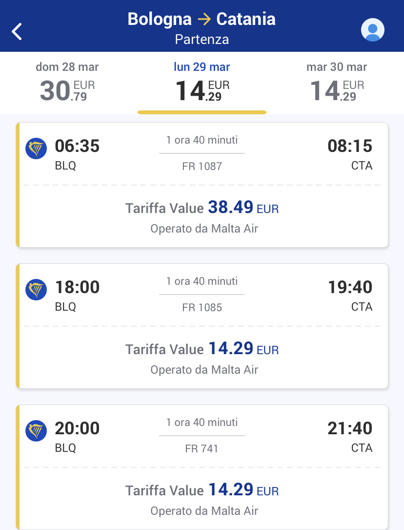 Ryanair mette subito in chiaro le cose per i voli previsti dalla prossima estate 2021. Infatti sulla rotta Bologna – Catania aumenta da 14 a 17 voli settimanali. I prezzi saranno molto bassi con prezzi, a partire da 14,29€ sola andata. Ancor più bassi delle sole tasse.