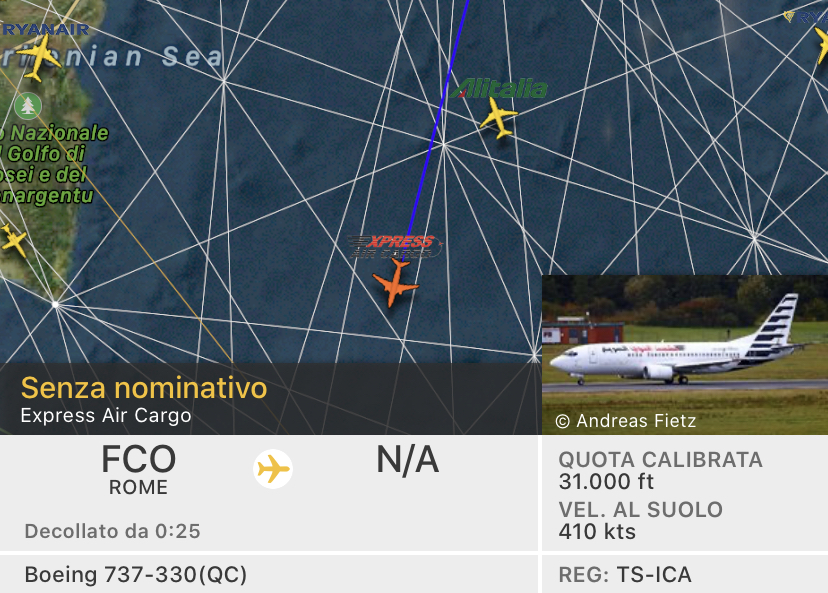 compagnie aeree Express Air Cargo a Roma Pubblicato da Italiavola il 30 novembre 2020 E’ decollato una mezzoretta fa da #Roma il B737/330QC dell compagnia aerea tunisina Express Air Cargo. Ha come destinazione #Tunisi. Condividi: Fai clic per condividere su Facebook (Si apre in una nuova finestra) Facebook Fai clic qui per condividere su LinkedIn (Si apre in una nuova finestra) LinkedIn Fai clic qui per condividere su Reddit (Si apre in una nuova finestra) Reddit Fai clic qui per condividere su Pinterest (Si apre in una nuova finestra) Pinterest Fai clic qui per condividere su Tumblr (Si apre in una nuova finestra) Tumblr Fai clic per condividere su X (Si apre in una nuova finestra) X Mi piace Caricamento... Correlati