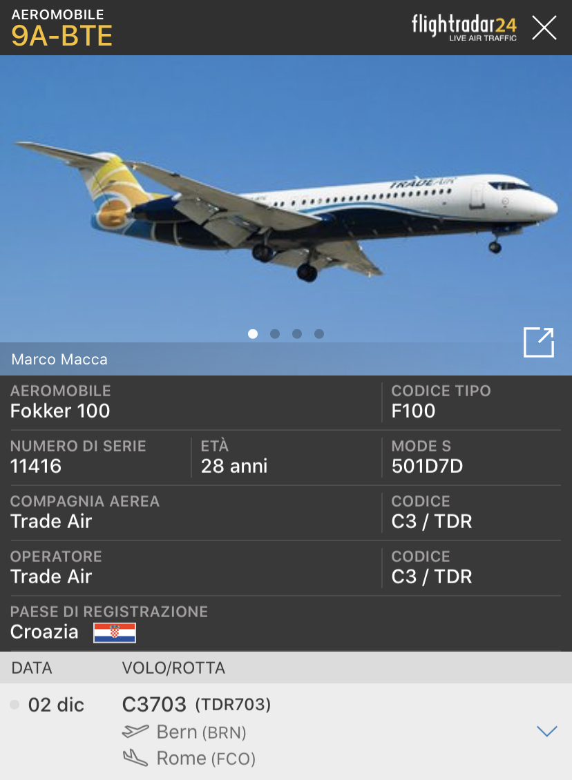 compagnie aeree Young Boys vola Trade Air Pubblicato da Italiavola il 2 dicembre 2020 Questa mattina la Trade Air ha trasportato lo Young Boys da Berna a Roma per una trasferta di una coppa europea. L’aereo e’ il Fokker 100 9A-BTE, che da Pisa di e’ trasferito precedentemente a Berna. Condividi: Fai clic per condividere su Facebook (Si apre in una nuova finestra) Facebook Fai clic qui per condividere su LinkedIn (Si apre in una nuova finestra) LinkedIn Fai clic qui per condividere su Reddit (Si apre in una nuova finestra) Reddit Fai clic qui per condividere su Pinterest (Si apre in una nuova finestra) Pinterest Fai clic qui per condividere su Tumblr (Si apre in una nuova finestra) Tumblr Fai clic per condividere su X (Si apre in una nuova finestra) X Mi piace Caricamento... Correlati
