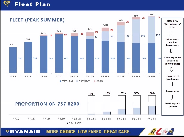 Nelle slides commentate da Michael O’Leary – CEO Ryanair, tra l’aplomb della giornata, ma sempre pronto a essere un guascone all’occorrenza. Per la compagnia aerea irlandese era il giorno, che ha permesso a Boeing di tirare un sospiro di sollievo, dopo la fila di cancellazioni dei B737MAX, anzi B737 family come lo chiama ora Dave Calhoun – CEO The Boeing Company – , nei suoi 20 mesi passati a terra.