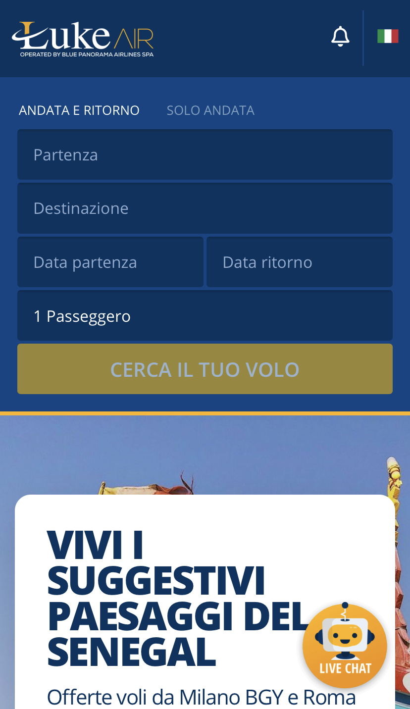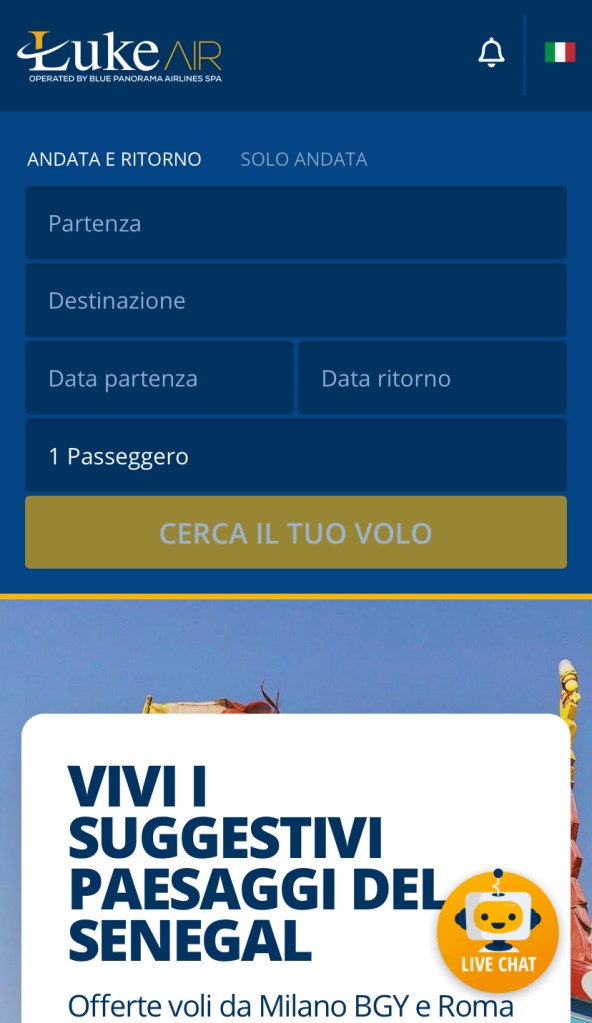 Ecco il sito che da Blue Panorama, diventa Luke Air.