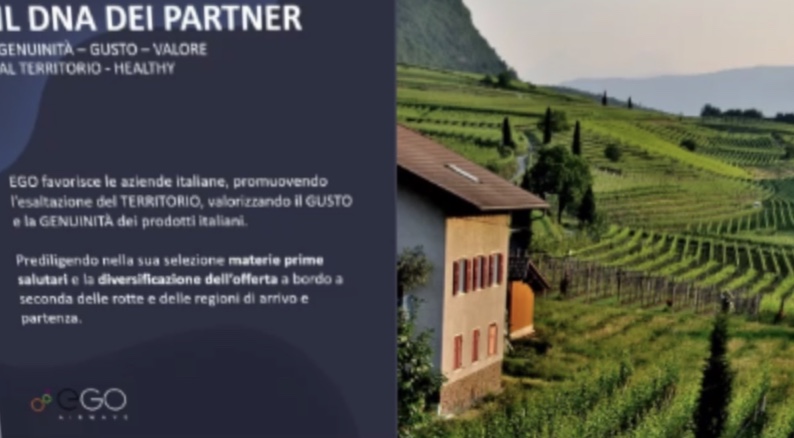 “Esclusivo e inclusivo”, questi i due concetti esposti da Denise Zatti – Direttore marketing e PR – nel presentare come si posizionerà Ego Airways nel mercato. L’intenzione e’ dare lustro al Made in Italy con una serie di servizi che non andranno meramente da quanto sarà a bordo. Ma pure prima e dopo il volo. Nel breve filmato istituzionale di 90 secondi prodotto per la compagnia aerea viene svelato l’estero e quale tipologia di prodotto vuole offrire sul mercato. Un qualcosa diverso dal low cost o dal tradizionale molto striminzito. L’anima della compagnia si vede anche dalle divise disegnate per il personale di cabina da Andres Romo di EGV1. Poi, i prodotti italiani da servire a bordo, oppure le esperienze da poter acquistare dopo il volo quando arrivati a destinazione.
