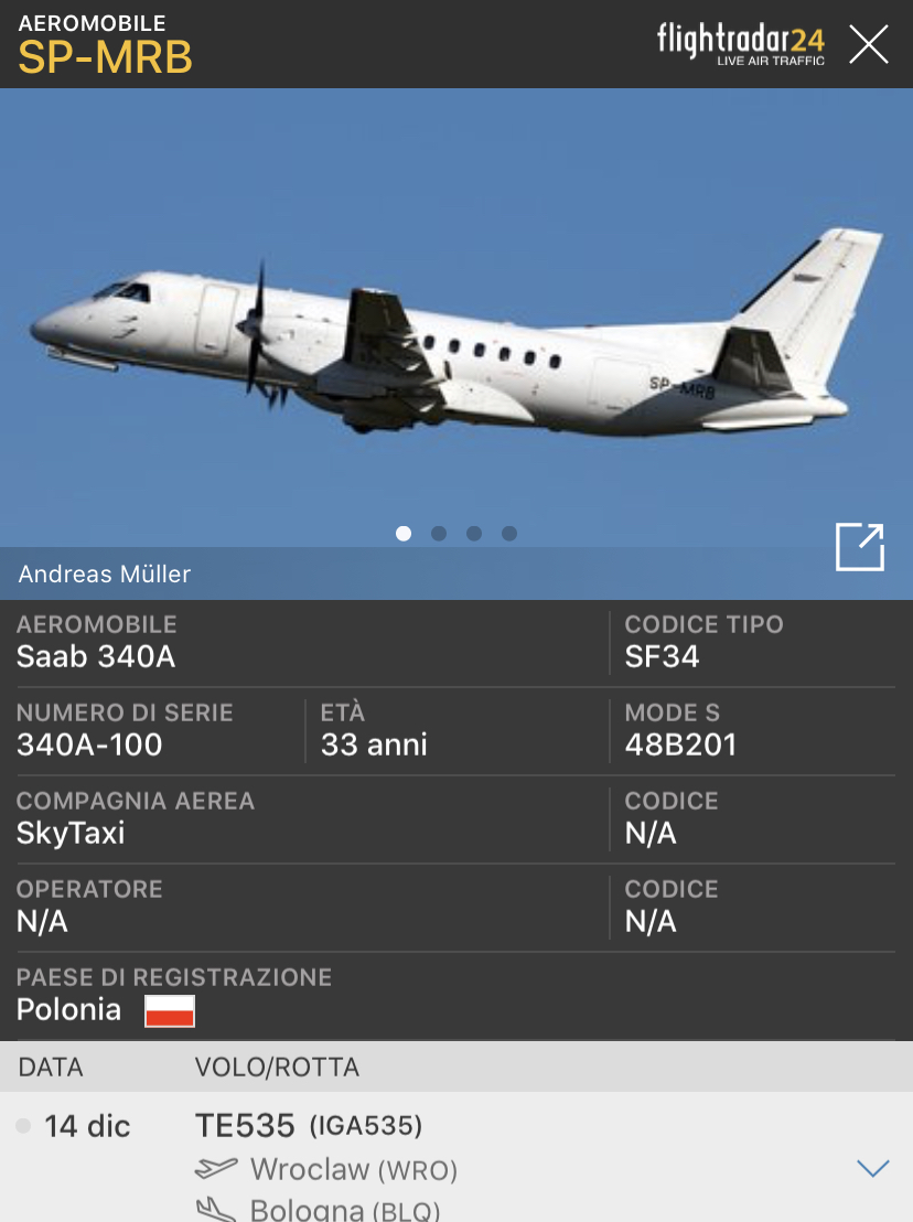 compagnie aeree SprintAir da Breslavia a Bologna Pubblicato da Italiavola il 14 dicembre 2020 Questo SF340A-100 SP-MRB della SkyTaxi e’ arrivato questa sera a Bologna proveniente da Breslavia. L’aereo e’ un velivolo utilizzato per trasporto passeggeri, generalmente per voli a domanda. Condividi: Fai clic per condividere su Facebook (Si apre in una nuova finestra) Facebook Fai clic qui per condividere su LinkedIn (Si apre in una nuova finestra) LinkedIn Fai clic qui per condividere su Reddit (Si apre in una nuova finestra) Reddit Fai clic qui per condividere su Pinterest (Si apre in una nuova finestra) Pinterest Fai clic qui per condividere su Tumblr (Si apre in una nuova finestra) Tumblr Fai clic per condividere su X (Si apre in una nuova finestra) X Mi piace Caricamento... Correlati