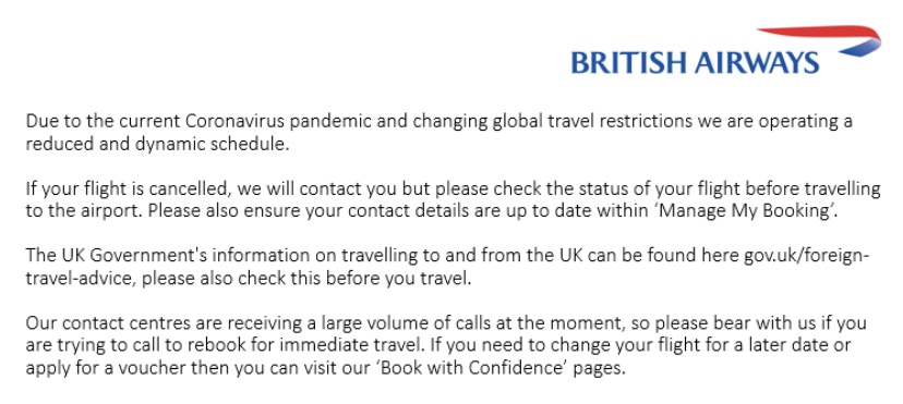 La compagnia aerea inglese con un tweet sta comunicando che effettuerà una riduzione dinamica dell’operativo. Ovviamente nulla di più e’ stato comunicato di specifico se non il classico messaggio di circostanza.