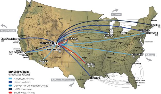 JetBlue Airways ha annunciato che il suo nuovo servizio stagionale invernale per Telluride, in Colorado è iniziato con il volo n. 2325 dall’aeroporto internazionale di Boston Logan (BOS) e il volo n. 2540 dall’aeroporto internazionale di Los Angeles (LAX) in arrivo al Montrose Regional Airport (MTJ) del Colorado sud-occidentale a verso le 2 del 19 dicembre.
