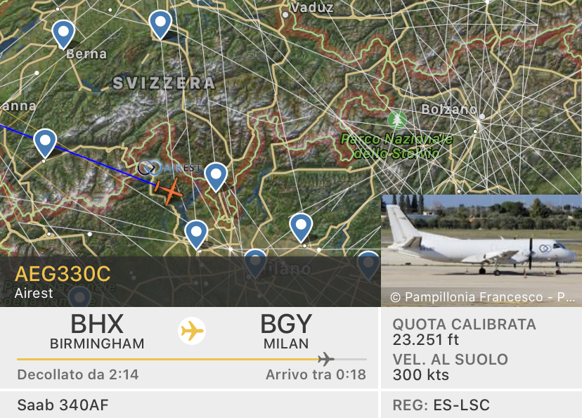 compagnie aeree Airest in arrivo a Bergamo Pubblicato da Italiavola il 25 dicembre 2020 Questo Saab 340AF della aerolinea estone Airest e’ in rotta verso Bergamo. Il volo proviene da Birmingham e ha le marche ES-LSC con il AEG330C. Condividi: Fai clic per condividere su Facebook (Si apre in una nuova finestra) Facebook Fai clic qui per condividere su LinkedIn (Si apre in una nuova finestra) LinkedIn Fai clic qui per condividere su Reddit (Si apre in una nuova finestra) Reddit Fai clic qui per condividere su Pinterest (Si apre in una nuova finestra) Pinterest Fai clic qui per condividere su Tumblr (Si apre in una nuova finestra) Tumblr Fai clic per condividere su X (Si apre in una nuova finestra) X Mi piace Caricamento... Correlati