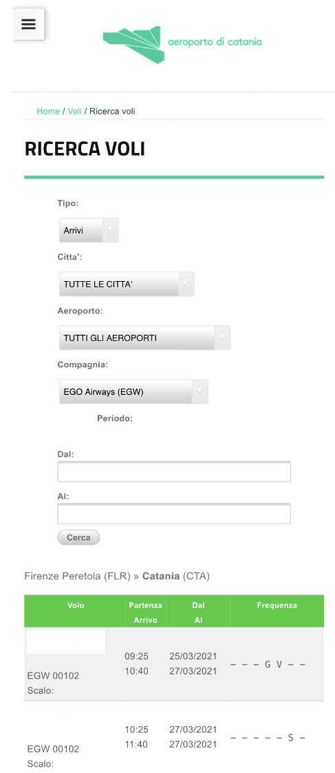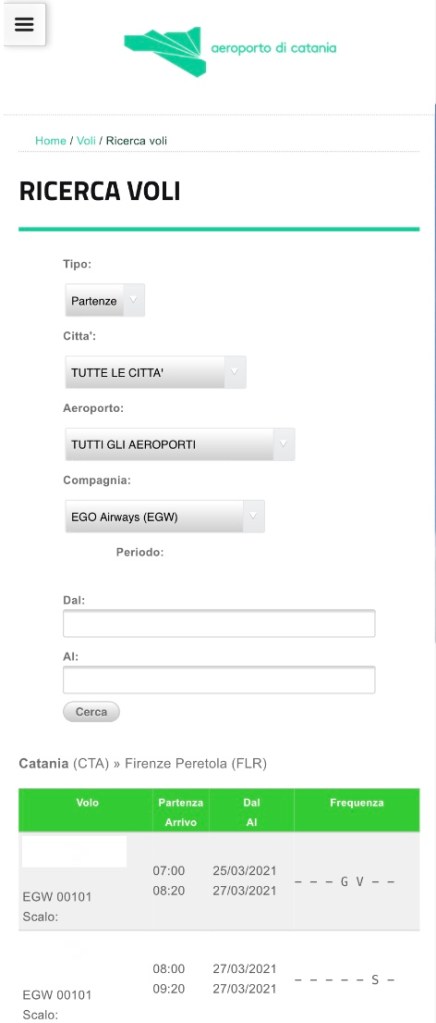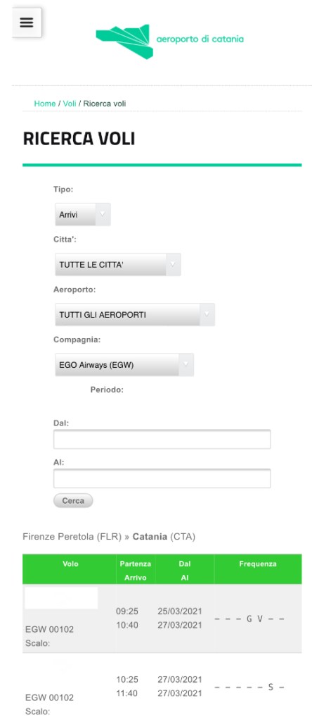 L’operativo e’ riferito a un periodo limitato degli ultimi tre giorni dell’orario invernale 2020/21, quindi dal 25/3 al 27/3/2021.
