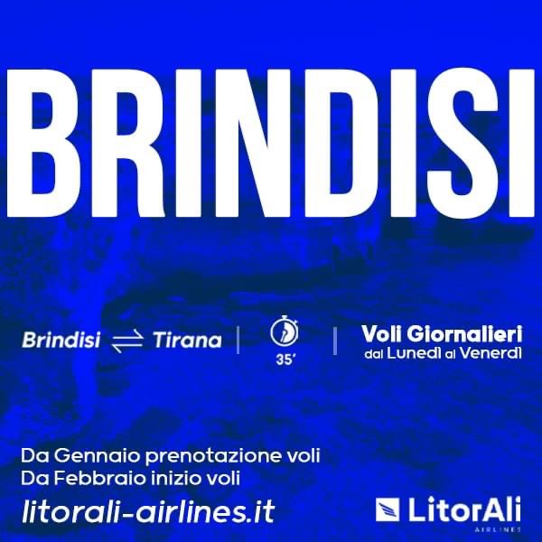 Il sito internet http://www.litorali-airlines.it annuncia che da questo mese sarà disponibile l’avvio delle prenotazioni sulle rotte Brindisi – Tirana e Napoli – Tirana.