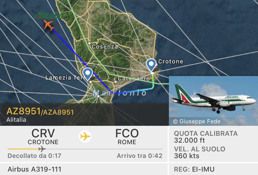 La AS Roma impegnata a Crotone nel l’incontro per la 16esima giornata del campionato di calcio ha utilizzato un A319-111 EI-IMU dell’Alitalia.
