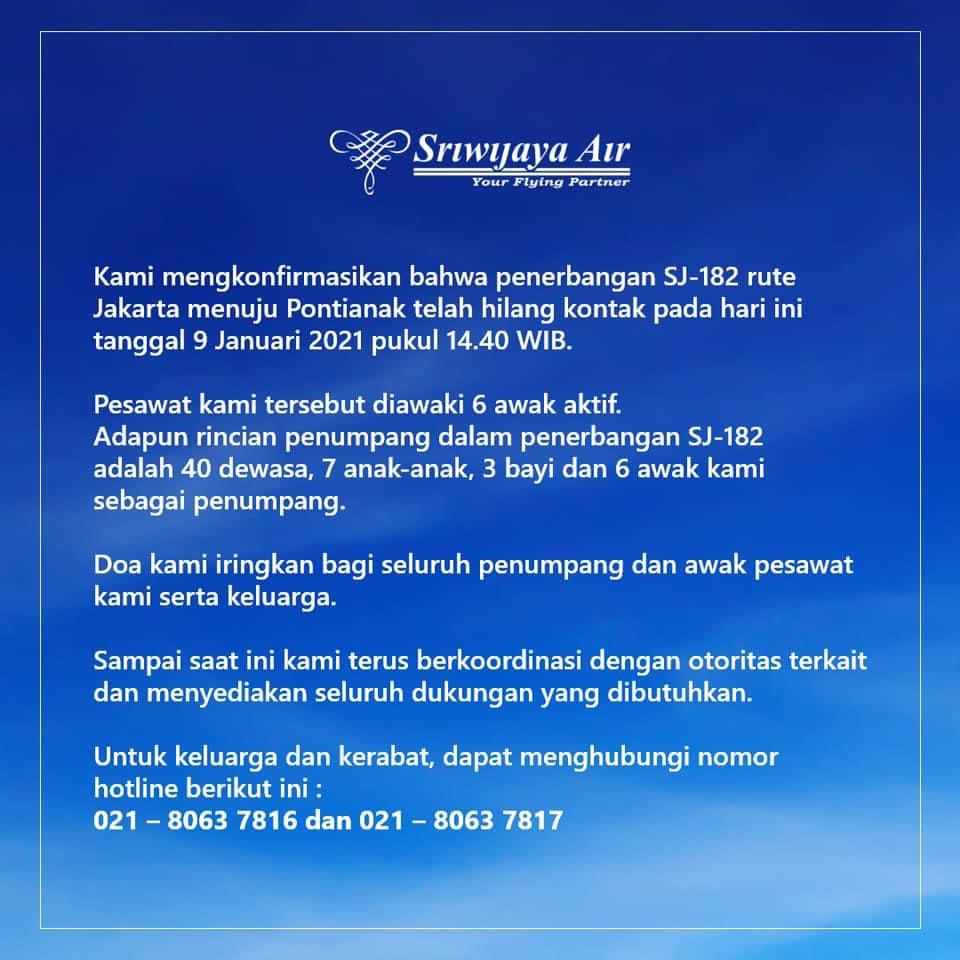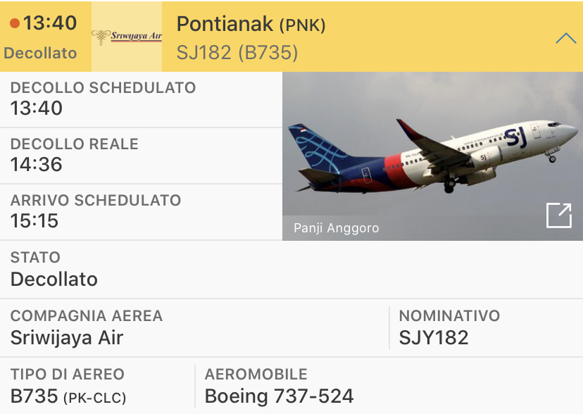 Non ha potuto imbarcarsi sul volo della Sriwijaya Airlines caduto non lontano da Jakarta, perché l’esito del richiesto test PCR non era arrivato prima dell’imbarco. Un passeggero indonesiano si può considerare miracolato per il fatto che non ha potuto salire a bordo per la mancanza del risultato. Poi e’ arrivato, esito negativo, poco dopo che l’aereo era decollato e si e’ inabissato a poca distanza dall’aeroporto della capitale indonesiana.