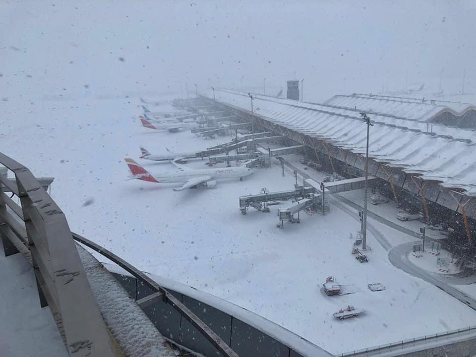 La tormenta di neve ha creato molti problemi a Madrid. L’aeroporto resterà chiuso fino al 13 locali (12 UTC), sebbene due piste sono già state ripulite. Ma le previsioni per formazioni di ghiaccio notturne e gli stretti protocolli in essere non può permetterne l’immediata riapertura. Domani alle 13 ci sarà un aggiornamento.
