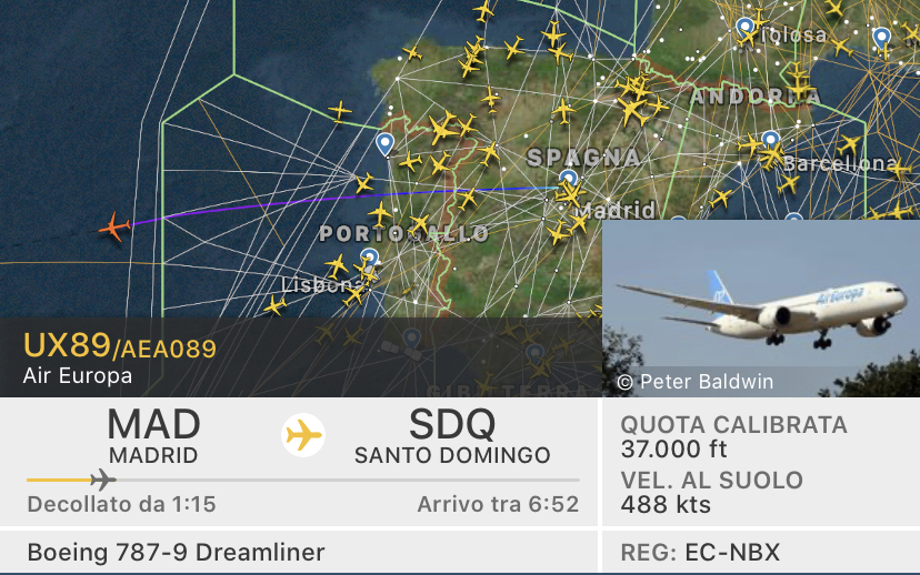 Il primo aereo a decollare dopo la riapertura di Madrid e’ stato questo Boeing 787-9 Air Europa EC-NBX diretto a Santo Domingo. La partenza e’ avvenuta alle 21:10.