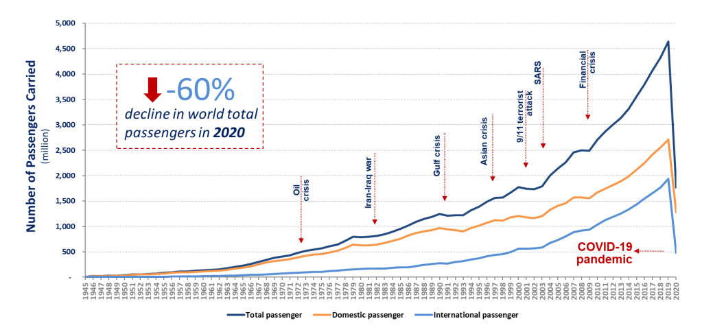 Il crollo della domanda di viaggi aerei a causa della pandemia è iniziato nel gennaio 2020, ma è stato limitato solo a pochi paesi. Mentre il virus continuava la sua diffusione globale, tuttavia, le attività di trasporto aereo si sono praticamente arrestate entro la fine di marzo.