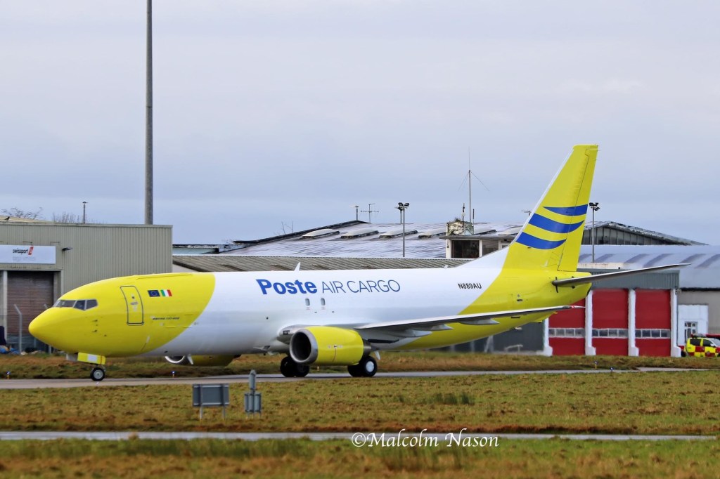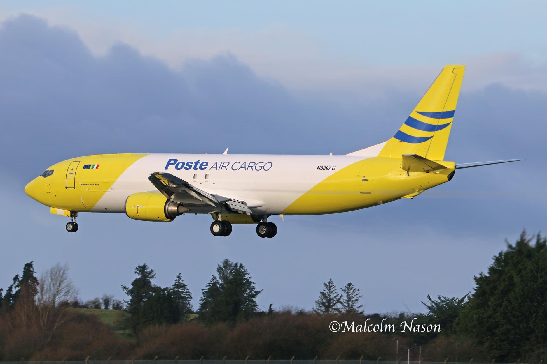 Poste Air Cargo ha fermo a Shannon anche il quarto B737-490 F EI-GUA. Tutti e cinque gli aerei sono di provenienza Alaska Airlines. Le foto sono di Malcolm Nason.