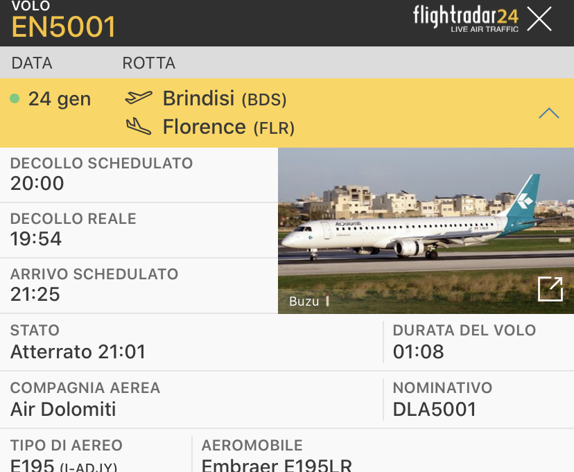 Ieri come EN5000 la Air Dolomiti ha trasportato l’Empoli con un volo charter da Firenze a Brindisi. Il team empolese ha volato sull’Embraer E195LR I-ADJY. L’Empoli ha giocato a Lecce quest’oggi ed e’ rientrato questa sera da Brindisi atterrando al Vespucci qualche minuti fa.