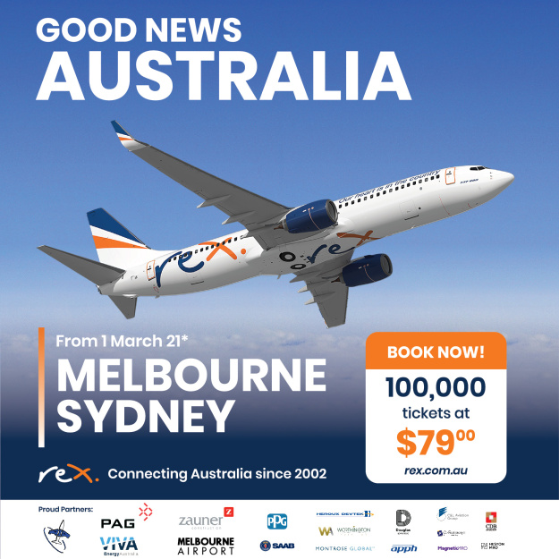 I servizi di jet REX tra Sydney e Melbourne inizieranno il 1 marzo 2021.