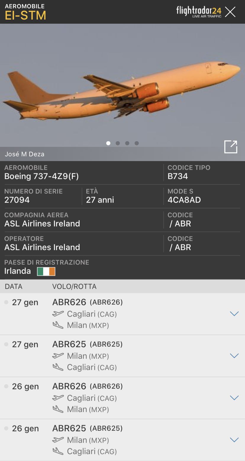Amazon ha lanciato la prima rotta nazionale cargo in Italia tra Milano Malpensa e Cagliari. Ieri mattina il volo ABR625 ha operato la prima rotazione con il Boeing 737/4Z9 (F) EI-STM ASL Airlines. Il volo di ritorno e’ stato l’ABR626.