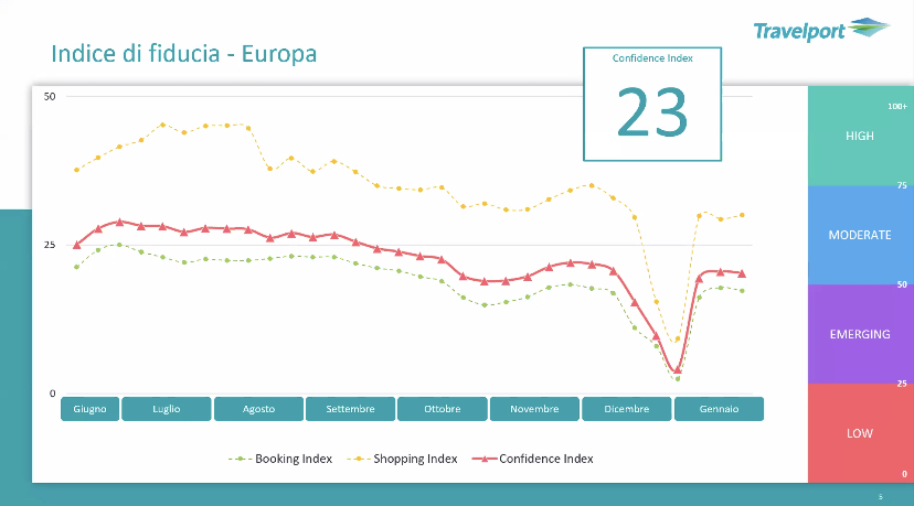 Qui invece gli indicatori sono booking index, shopping index, confidence index. Gli andamenti identici sul raffronto temporale. Il punto negativo e’ stato nell’inizio di gennaio. Ora e’ di nuovo in crescita.