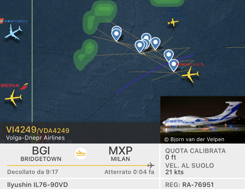 compagnie aeree Volga Dnepr Il76 da Barbados a Milano Pubblicato da Italiavola il 6 febbraio 2021 Questo volo VI4249 della Volga Dnepr Airlines ha operato un volo da Bridgetown a Milano Malpensa. L’aereo Il76-90VD RA-76951 e’ giunto non stop da Barbados. Condividi: Fai clic per condividere su Facebook (Si apre in una nuova finestra) Facebook Fai clic qui per condividere su LinkedIn (Si apre in una nuova finestra) LinkedIn Fai clic qui per condividere su Reddit (Si apre in una nuova finestra) Reddit Fai clic qui per condividere su Pinterest (Si apre in una nuova finestra) Pinterest Fai clic qui per condividere su Tumblr (Si apre in una nuova finestra) Tumblr Fai clic per condividere su X (Si apre in una nuova finestra) X Mi piace Caricamento... Correlati