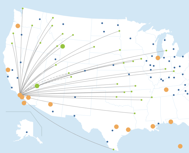 Nl piano di espansione della Allegiant Air da Los Angeles vi sono quattro nuove rotte. Attualmente le destinazioni sono 27 e saliranno a 31.