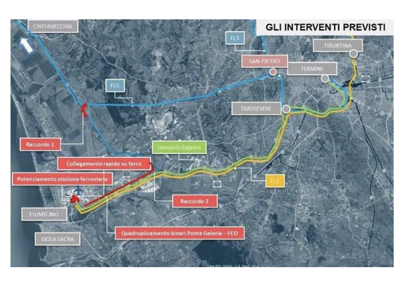Il nuovo Fiumicino vedrà anche in espansione sui collegamenti di superficie. La linea ferroviaria passerà da 3 a 5 binari. Il tutto permetterà l’affluenza di treni anche da Civitavecchia. Quadruplicato il tratto tra Ponte Galeria e Aeroporto. Una nuova linea verso sud collegherà il terminal con Fiumicino e Roma – Lido.