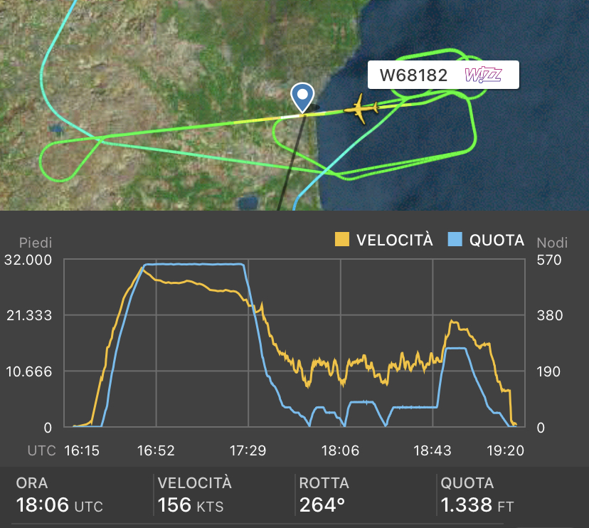 A Catania e’ in atto il windshear, lo riporta il METAR delle 20:20, ma il volo Wizz da Venezia ha effettuato due avvicinamenti tra le 18:45 e le 19:10 per pista 26. Un terzo avvicinamento per pista 08 e’ stato anch’esso non completato. Poi si e’ diretto a Malta come aeroporto alternato.