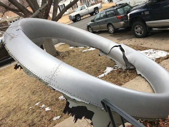 Nelle foto di un residente in un area abitativa nelle vicinanze di Denver si possono vedere i danni causati dall’esplosione nella giornata di venerdì del motore destro del Boeing 777/222 della United Airlines. Le foto sono su Twitter al http://www.Twitter.com/DillonMThomas e si vede la cornice del bordo di entrata del propulsore Pratt & Whitney
