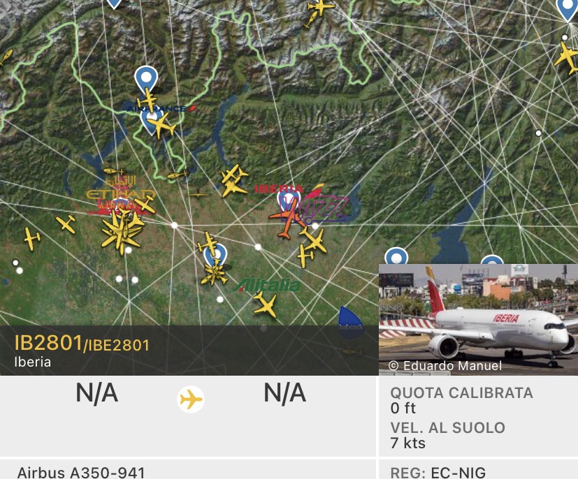 Il vettore spagnolo ha utilizzato per i trasferimenti del team spagnolo un Airbus 350-941 EC-NIG con il volo IB2800. Ripartirà a breve come IB2801.