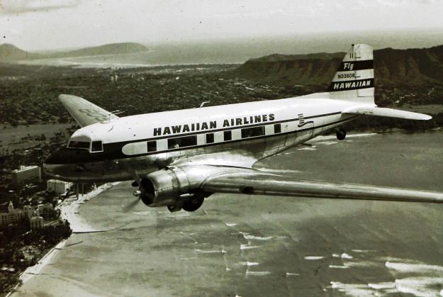 Nel 1963, Hawaiian Airlines iniziò i tour di un giorno delle tre isole maggiori. La prima escursione del genere da parte di una compagnia aerea, i passeggeri potevano sbirciare attraverso i finestrini panoramici di 5 piedi di un DC-3 Viewmaster (sotto).