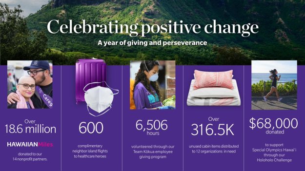 Nel 2020, a seguito della riduzione della domanda e delle restrizioni di viaggio causate dalla pandemia COVID-19, Hawaiian ha gestito una rete di voli ridotta e ha sospeso la maggior parte delle sue rotte internazionali. Con la riapertura dello stato delle Hawaii per i viaggi, Hawaiian ha gradualmente ripreso il servizio non-stop che collega le isole con 16 città gateway degli Stati Uniti, più di qualsiasi altra compagnia aerea, e ha riavviato i voli tra Honolulu e il Giappone e la Corea del Sud. A marzo e aprile, Hawaiian lancerà quattro nuove rotte per il Nord America, incluso un servizio non-stop tra Honolulu e Austin, Ontario, California e Orlando, nonché un servizio giornaliero non-stop tra Long Beach e Maui.