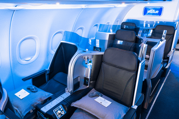 La rotta Miami-Los Angeles prevede JetBlue Mint® (sopra e sotto), l’esperienza di viaggio premium della compagnia aerea.